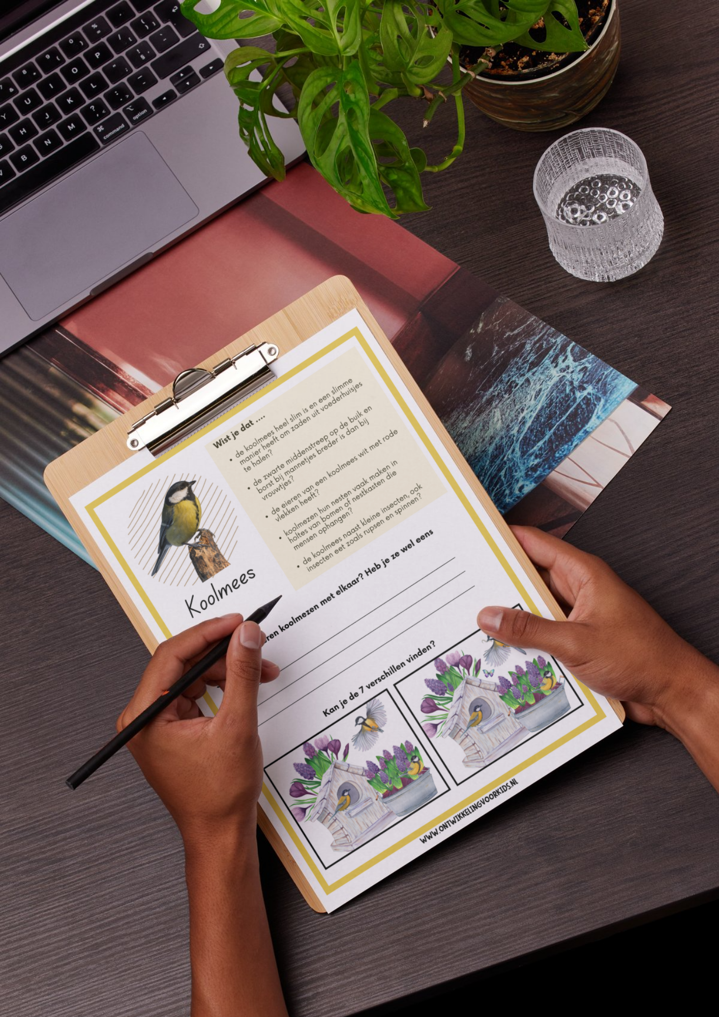 Zoek samen naar vogels in het park, los puzzels op en leer spelenderwijs over de natuur.